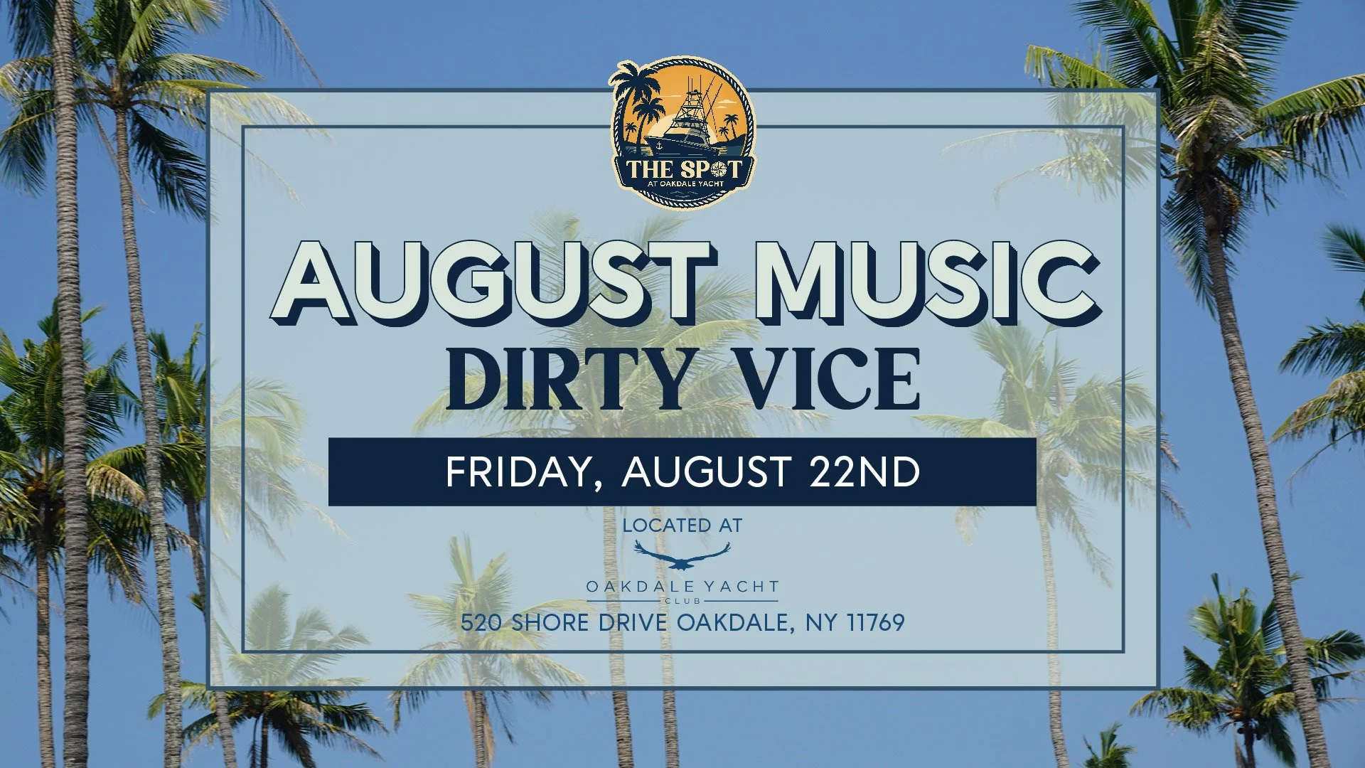 Kick up your boots and head down to The Spot at Oakdale Yacht every Thursday evening for Country Night with the one and only DJ Salty Jim! He’s spinning all your favorite country hits starting at 6PM, so get ready for line dancing, cold drinks, and nonstop good vibes by the water.